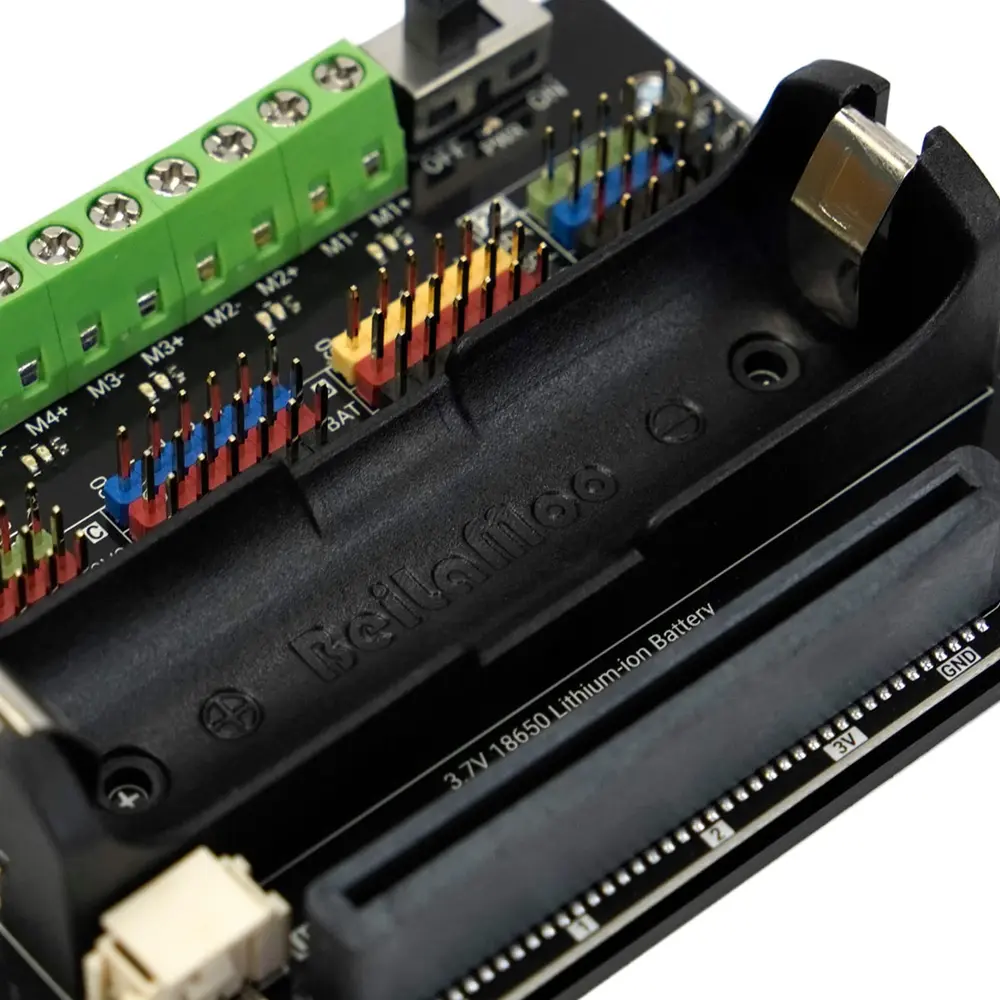 Het multifunctionele board voor Unihiker is een geavanceerde module die is ontworpen om de mogelijkheden van Unihiker (K10 / M10) en Micro:bit ontwikkelborden te verbeteren. Door naadloze integratie met de hoofdcontroller biedt het drie cruciale verbeteringen: uitgebreide I/O-uitbreiding, een autonoom 18650 mobiel voedingssysteem en een hoogstroommotor- en servo-aandrijfeenheid. Dit board ondersteunt de gelijktijdige werking van maximaal 4 DC motors en 6 servo's, samen met diverse digitale, analoge en communicatiepoorten. Het is een onmisbare tool voor het creëren van complexe mobiele robots, draagbare interactieve apparaten en complexe maakprojecten die uitgebreide connectiviteit en stroomautonomie vereisen.