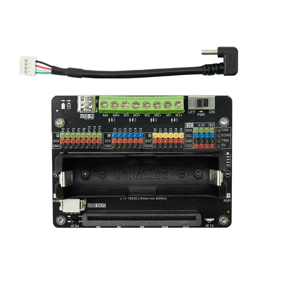 De I/O- board is ontworpen om echte projectmobiliteit te vergemakkelijken en maakt omvangrijke externe batterijpakketten en aangesloten stroomkabels overbodig. De kaart bevat een geïntegreerde 18650-batterijhouder met een compleet laad- en ontlaadbeheersysteem. Een ingebouwde batterijniveau-indicator geeft de stroomstatus duidelijk weer voor een veilige werking. Voor de krachtige Unihiker M10 wordt een speciaal ontworpen Type-C naar HY2.0-4P-voedingskabel meegeleverd, die zorgt voor een stabiele en betrouwbare stroomvoorziening voor veeleisende toepassingen.