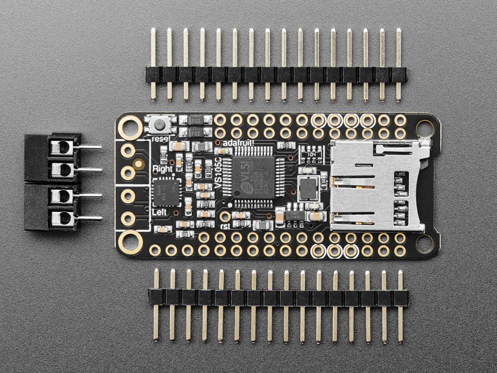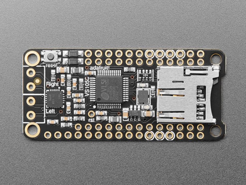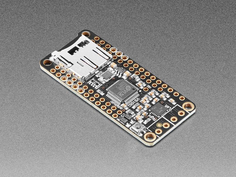 Het beschikt over de VS1053-codecchip, die formaten zoals MP3, board , Ogg Vorbis, WMA, MIDI, FLAC, WAV en meer kan decoderen. Pas de bas, treble en het volume digitaal aan via een SPI-interface, compatibel met elk feather voor audioweergave vanaf een SD-kaart.