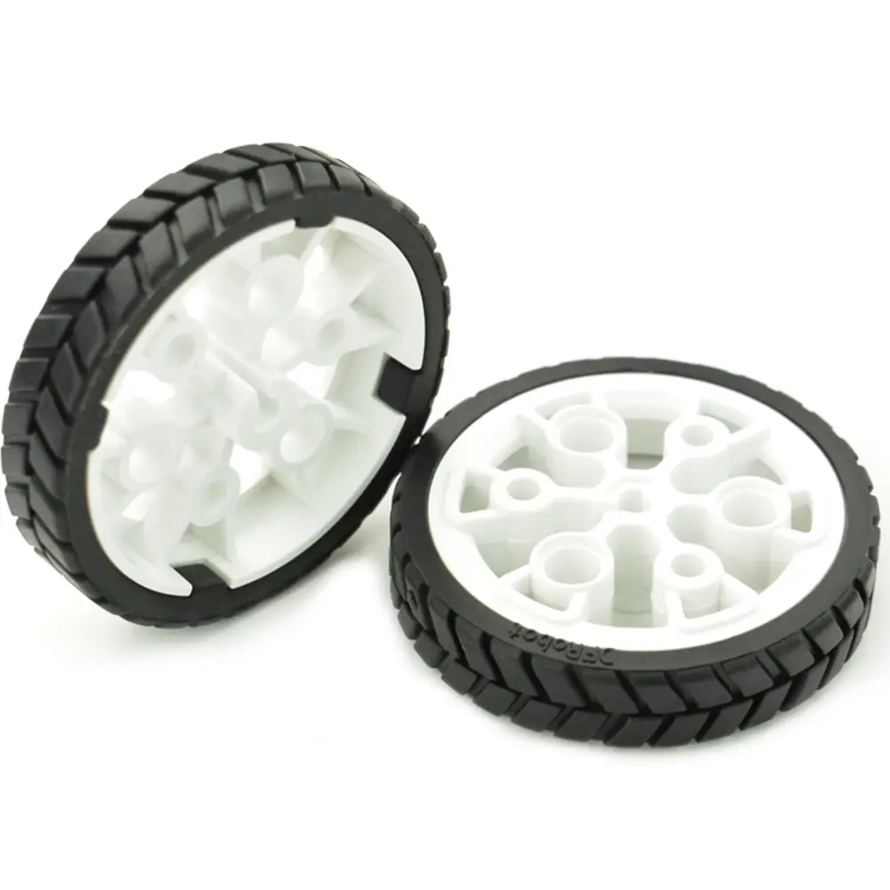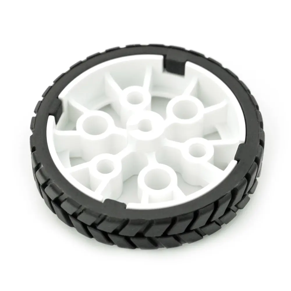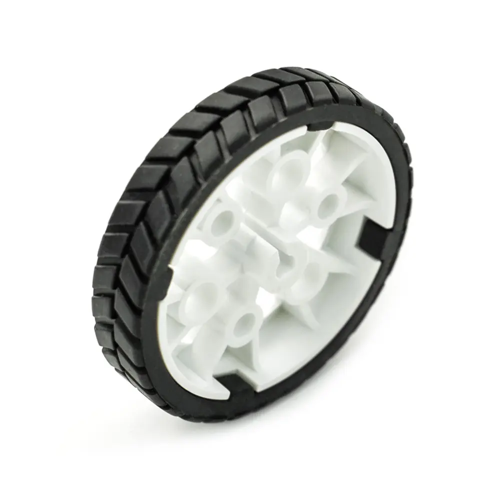 Dit speciaal ontworpen rubberen wiel is voorzien van een duurzame rubberen band met een precieze diameter van 43 millimeter (1,69 inch). Het is ontworpen om naadloos te integreren met zowel onze mini-metalen tandwielmotoren als de metalen tandwielmotoren van Solarbotics, en biedt een flexibele oplossing voor diverse robottoepassingen. De naaf is voorzien van strategisch geplaatste tanden die plaats bieden aan een reflectiesensor voor encoderfeedback, wat de regel- en meetmogelijkheden verbetert.