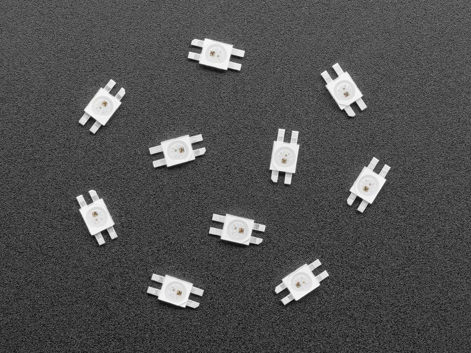 Dankzij een ingebouwde driver levert elke LED een constante stroom van ~12 mA voor een consistente kleur, zelfs bij wisselende spanningen. De drie RGB-LED's worden aangestuurd door een kleine chip die PWM verwerkt, zodat u de kleurgegevens één keer kunt instellen.