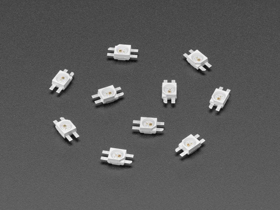 Deze NeoPixel LED's met omgekeerde montage bieden een levendige oplossing voor projecten die platte printplaten vereisen of vereenvoudigde productie met enkelzijdige componenten. Met afmetingen van 3,1 mm x 2,7 mm x 1,7 mm zijn ze eenvoudig te solderen met behulp van de bovenste pads en een uitsparing in de printplaat.