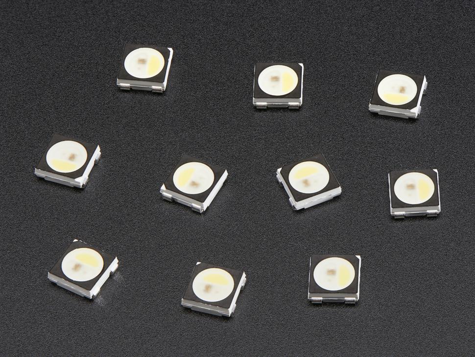 Verlicht uw innovaties met slimme RGB+White LED's. Deze geavanceerde NeoPixels integreren vier LED's in elke unit – rood, green , blauw en wit – voor levendige lichteffecten. Ideaal voor op maat gemaakte ontwerpen, maken deze LED's eindeloze combinaties mogelijk dankzij een geïntegreerde LED- driver .