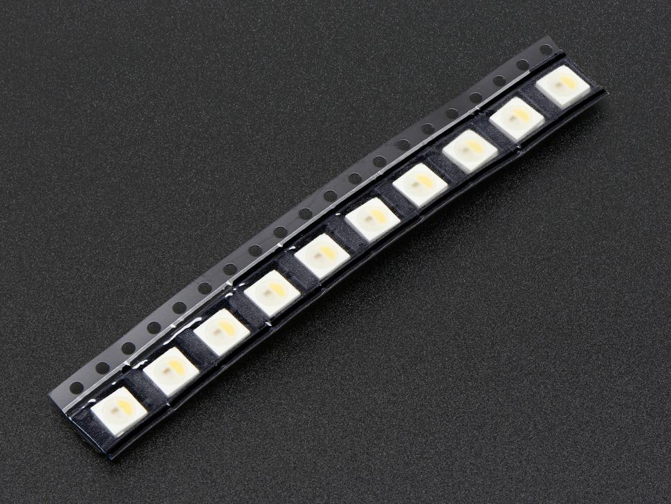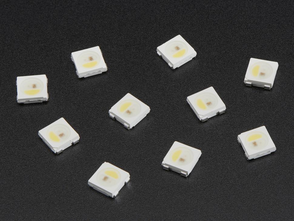 Ervaar levendige verlichting met Smart RGB+White NeoPixels, met vier leds in elk: rood, green , blauw en wit, voor superieure lichteffecten. Dit pakket bevat tien 5050-formaat (5 mm x 5 mm) SMD-leds, klaar voor aangepaste ontwerpen.