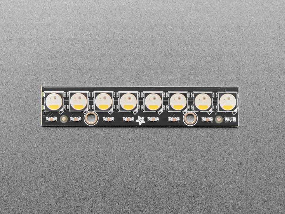 Specificaties: 8-bits PWM per kanaal voor 32-bits kleurregeling, 8 geïntegreerde 5050 RGBW-leds en een stroomverbruik van 5 V. Elke led outputs een consistente kleur dankzij een constante stroom van 18 mA. Compatibel met het 800 kHz-protocol en vereist specifieke timing, ideaal voor REAL microcontrollers.