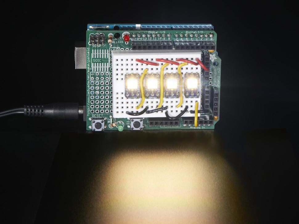 NeoPixels zijn voorzien van een 5050-formaat led met een geïntegreerde microcontroller die individuele helderheidsregeling van drie koelwitte dies mogelijk maakt. Elke led fungeert als schuifregister en kan een inkomende datastroom verwerken. Zo kunnen talloze leds worden beheerd door simpelweg de string te verlengen of ongewenste leds te verwijderen.