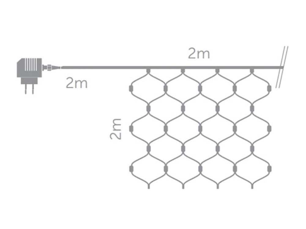 Verlicht je ruimte met de Netlight LED, met 144 warm witte lampjes verspreid over een frame van 2 x 2 meter. Deze verlichtingsoplossing is ontworpen met een strak zwart draad voor een naadloze integratie in elk interieur.