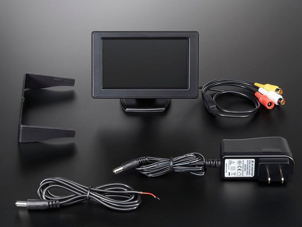 Deze charmante kleine televisie heeft een TFT- display met een diagonaal van 4,3 inch (11 cm) en is compleet met board NTSC/PAL- driver , behuizing en standaard. De installatie is eenvoudig: sluit 12 V DC aan via de 2,1 mm center-positieve DC-aansluiting of gebruik de meegeleverde kabel met de rode en zwarte draden. Sluit hem aan op een composietvideobron met een van de RCA-kabels voor een instant tv-ervaring.
