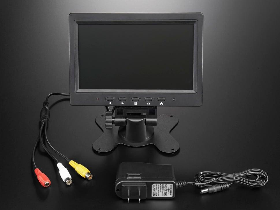 Het display is gebruiksvriendelijk: sluit de meegeleverde 12VDC-adapter aan op de 2,1 mm center-positieve DC-aansluiting en sluit vervolgens een composietvideobron aan op een van de RCA-kabels. U hebt direct een werkend display !
