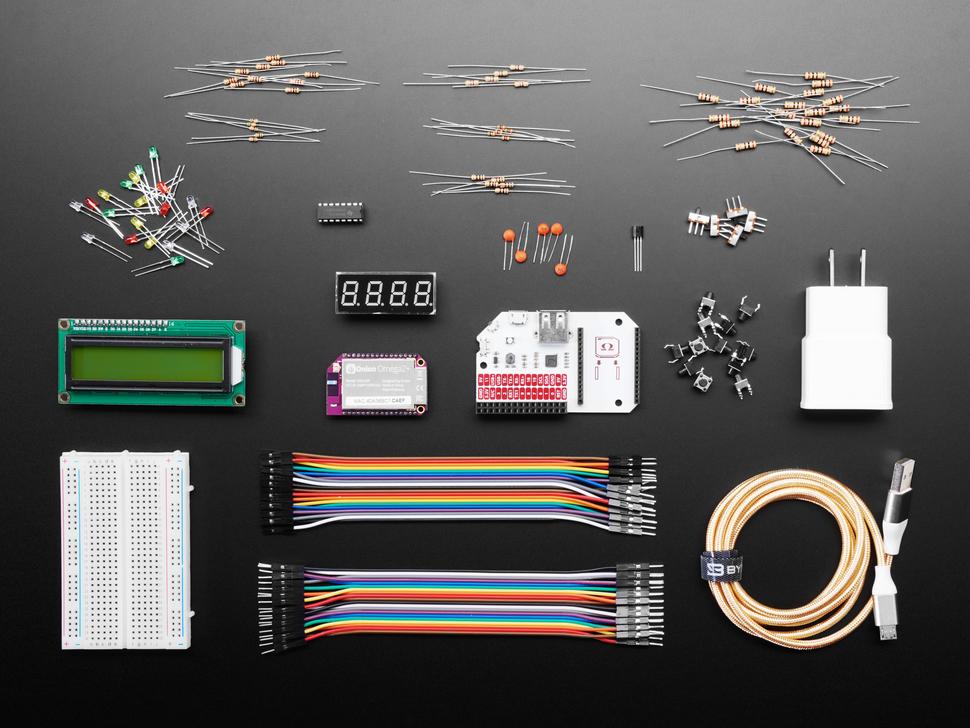 Extra hardware omvat het Omega2+ board met ingebouwde wifi, 128 MB RAM, 32 MB flashgeheugen en microSD-ondersteuning. Het biedt een alles-in-één platform voor IoT-experimenten, ideaal voor zowel beginners als gevorderde projecten.