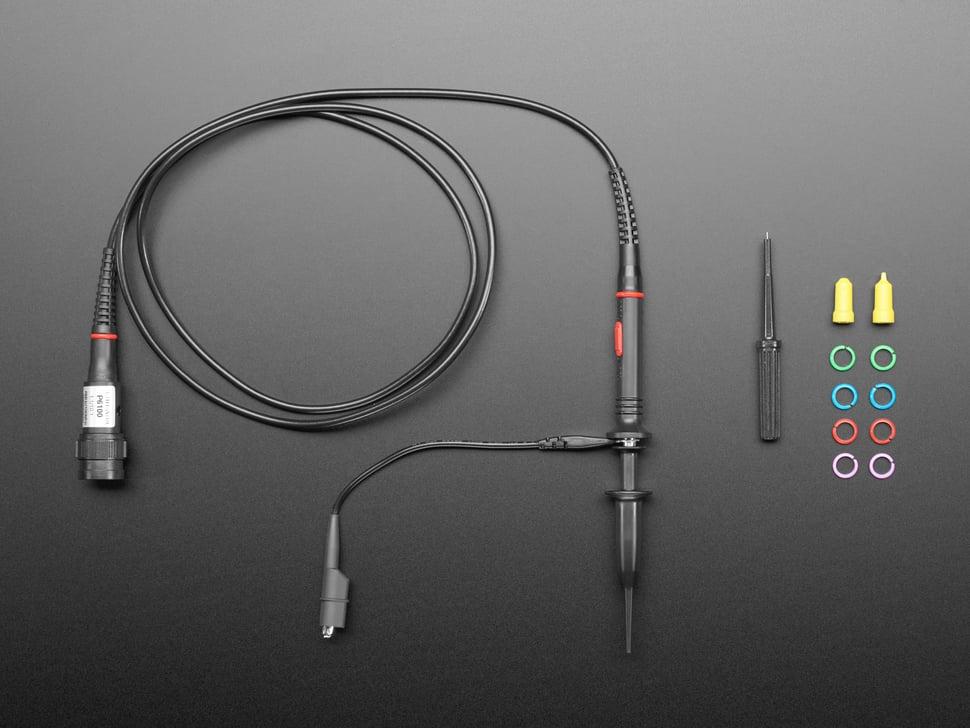 Prik en prik in uw elektronica met een nieuwe 'scope probe'. Deze klassieke probe is van hoge kwaliteit en heeft een stevige veerklem en een betrouwbare aardingsklem. Hij is geschikt voor signalen tot 100 MHz en heeft een standaard oscilloscoop-BNC-connector. De kleur van de ring op de behuizing van de probe en de connector kan variëren.