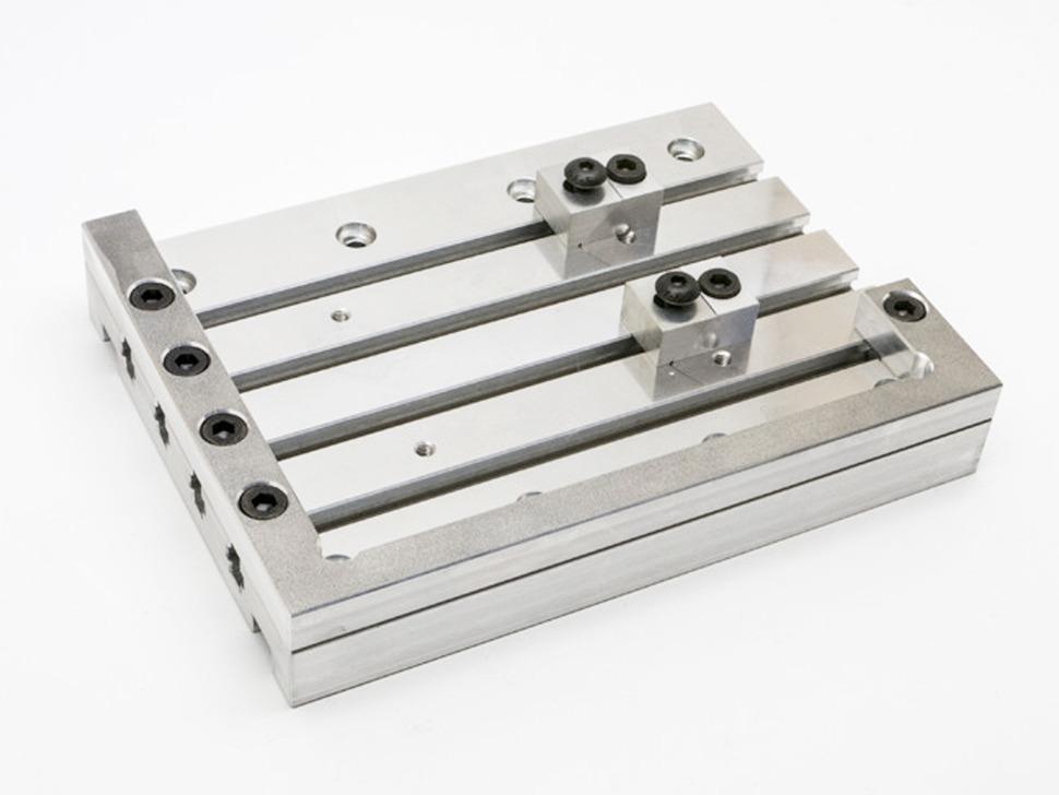 Bevestig en verwijder materialen snel met een inbussleutel. De nauwkeurig bewerkte aluminium uitlijnbeugel wordt direct in het T-gleufbed van de Othermill geschroefd, terwijl de teenklemmen schuiven en de materialen stevig vastzetten.