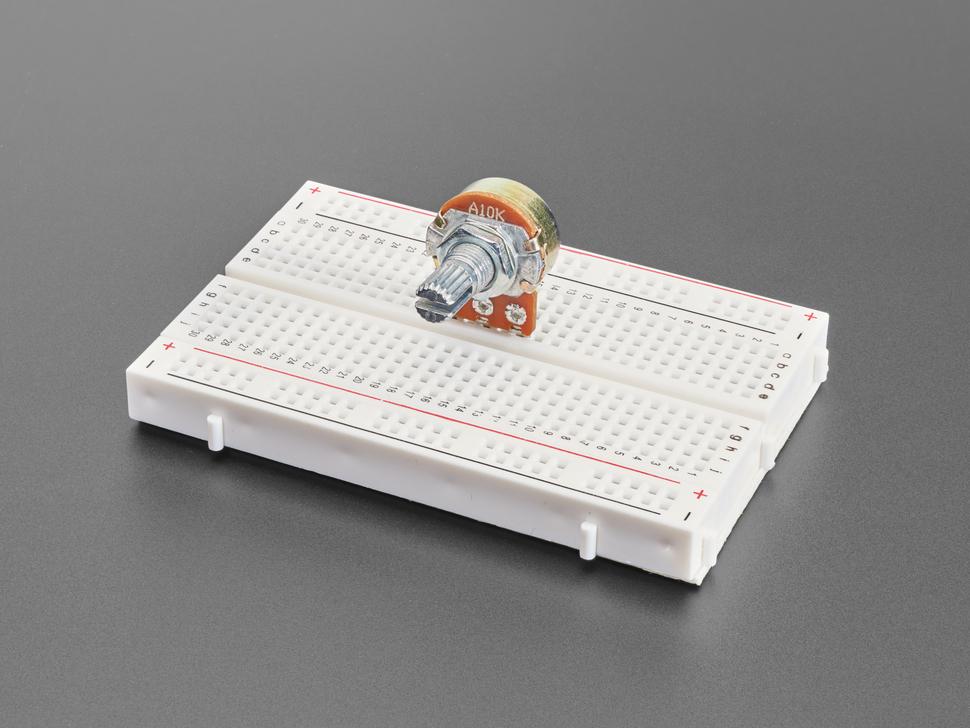 Met de puntige pootjes met een tussenruimte van 0,5 cm (0,2 inch) kan hij eenvoudig in een breadboard of perfboard worden geplaatst, wat efficiënt prototypen mogelijk maakt. Zodra je project klaar is, integreer je het naadloos door het door een geboord gat te monteren met de meegeleverde ring en zeskantmoer.