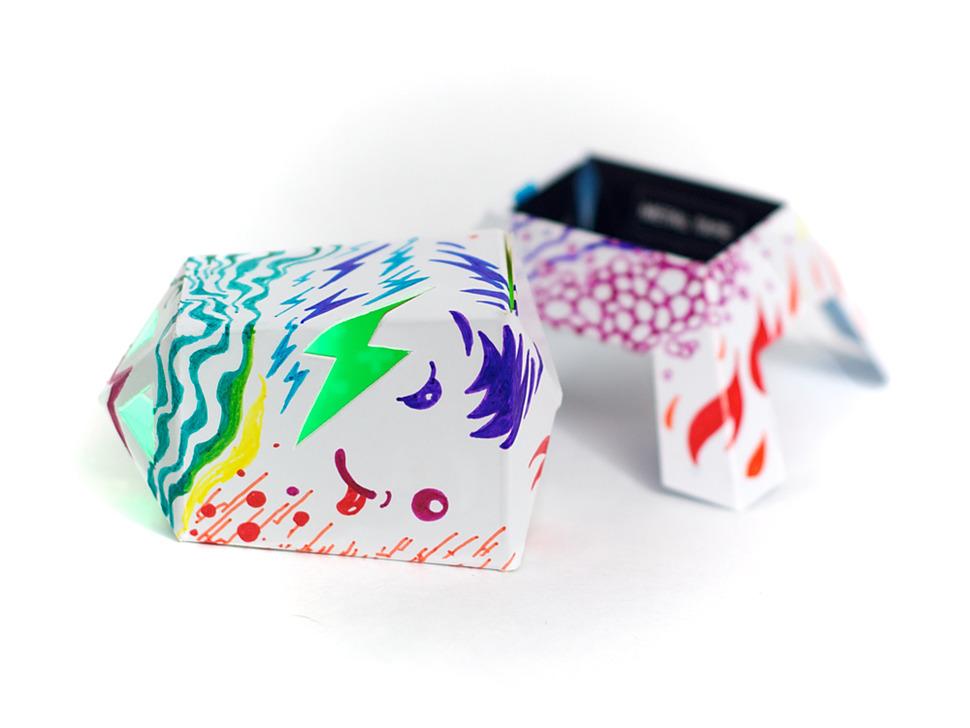 Deze papieren speeltjes transformeren tot functionele nachtlampjes, feestlampjes of leuke kamerdecoraties. Zet ze aan door de ruimteschepen op de juiste manier in hun landers te plaatsen; zet ze uit door de positie te veranderen.