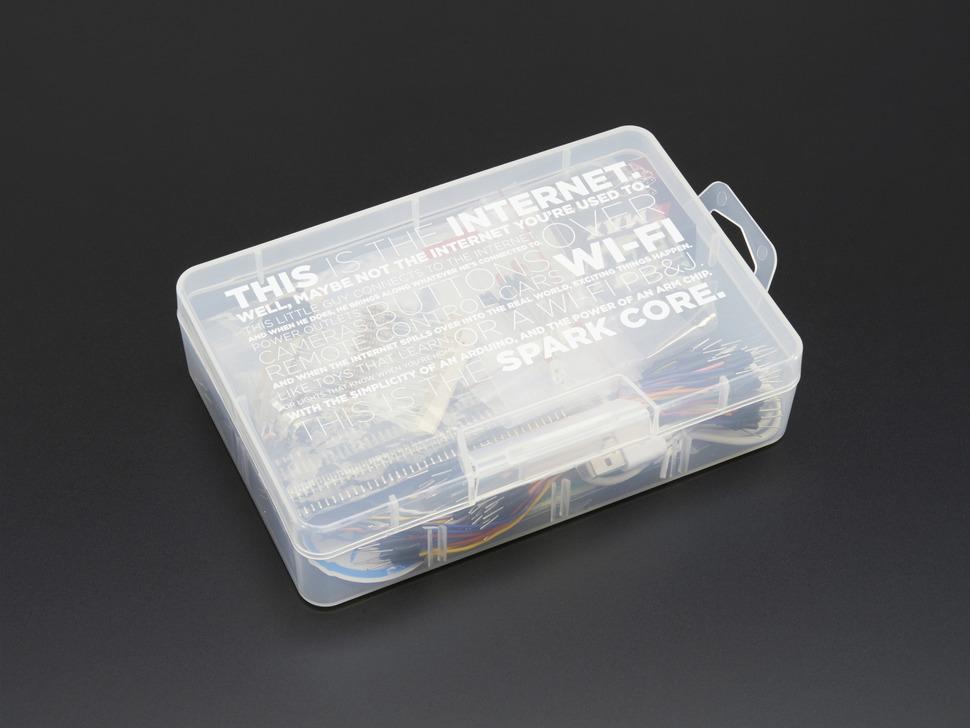 De kit zit in een slanke case en bevat weerstanden, condensatoren en sensoren. De Spark Core is een krachtig platform dat wifi-connectiviteit mogelijk maakt en tegelijkertijd uitgebreid sleutelen aan je IoT-avonturen mogelijk maakt.