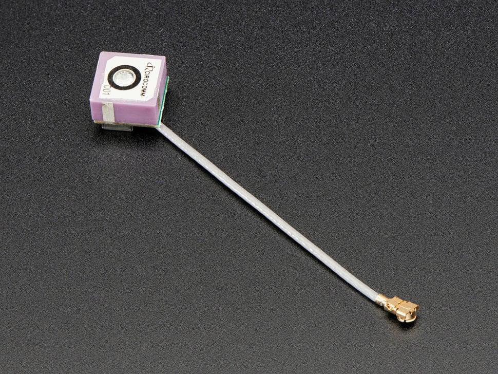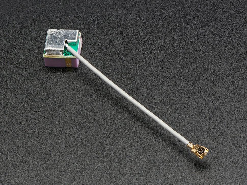 Deze compacte GPS-antenne is slechts 9 mm x 9 mm x 6,5 mm measures en is voorzien van een 50 mm uFL-kabel, ideaal voor projecten met beperkte ruimte. Uitgerust met een standaard uFL-connector integreert deze passieve antenne naadloos met apparaten zoals de FONA 808.