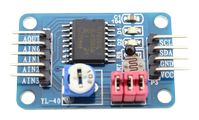 Deze AD (analoog / digitaal) / DA (digitaal / analoog) module kan als brug dienen tussen digitaal en analoog. Met een analoge input van 0V - 5V wordt er een waarde van 8 bit gegenereerd, welke door middel van het I2C protocol weer wordt verzonden. Deze module bevat ook 1 output kanaal, welke vanaf een 8-bit waarde een analoge output genereerd.