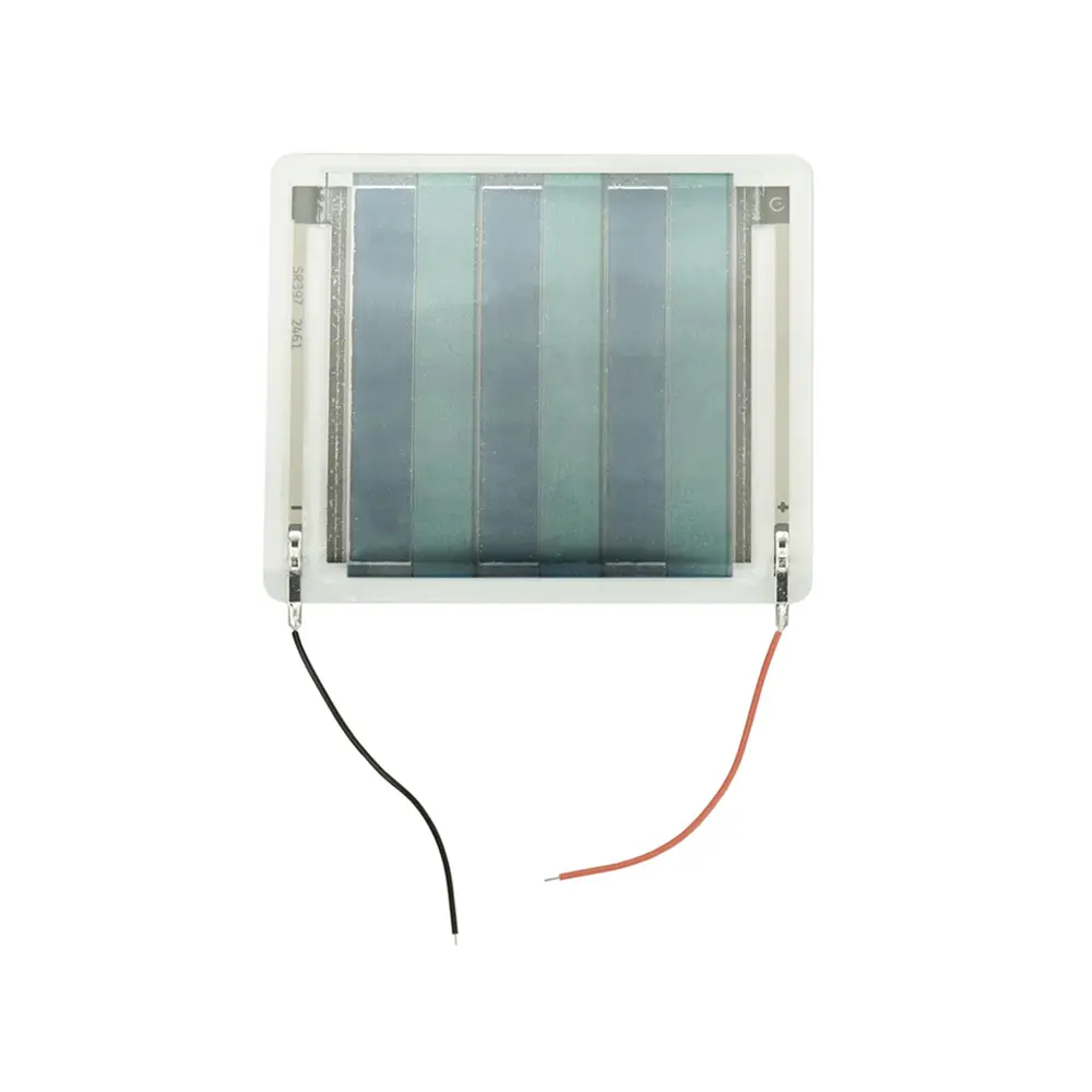 Met afmetingen van 71,5 x 60 x 0,2 mm en bestaande uit zes cellen van elk 50 x 50 x 0,2 mm, is de batterij ontworpen om te presteren binnen een temperatuurbereik van -20 °C tot 40 °C en een luchtvochtigheid tot 85%. Deze eigenschappen maken hem ideaal voor het opwekken van fotonische energie binnenshuis, met name in slimme huizen, zelfvoorzienende IoT-knooppunten en industriële monitoringsystemen.