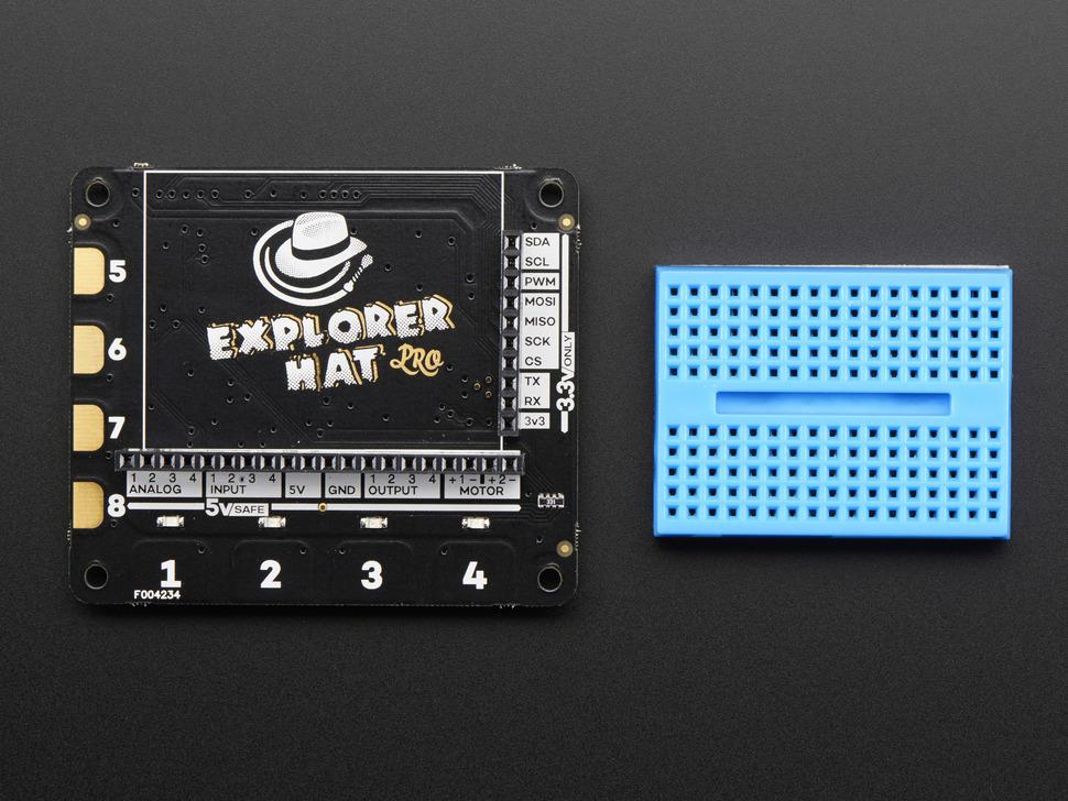 Extra functies zijn onder andere een compact mini- breadboard , 4 analoge inputs voor de integratie van analoge signalen en 2 H-brug- drivers voor bidirectionele aansturing van twee 5V-motoren. Maak gebruik van Pimoroni 's Python- library en voorbeelden op GitHub voor een uitgebreide setup.