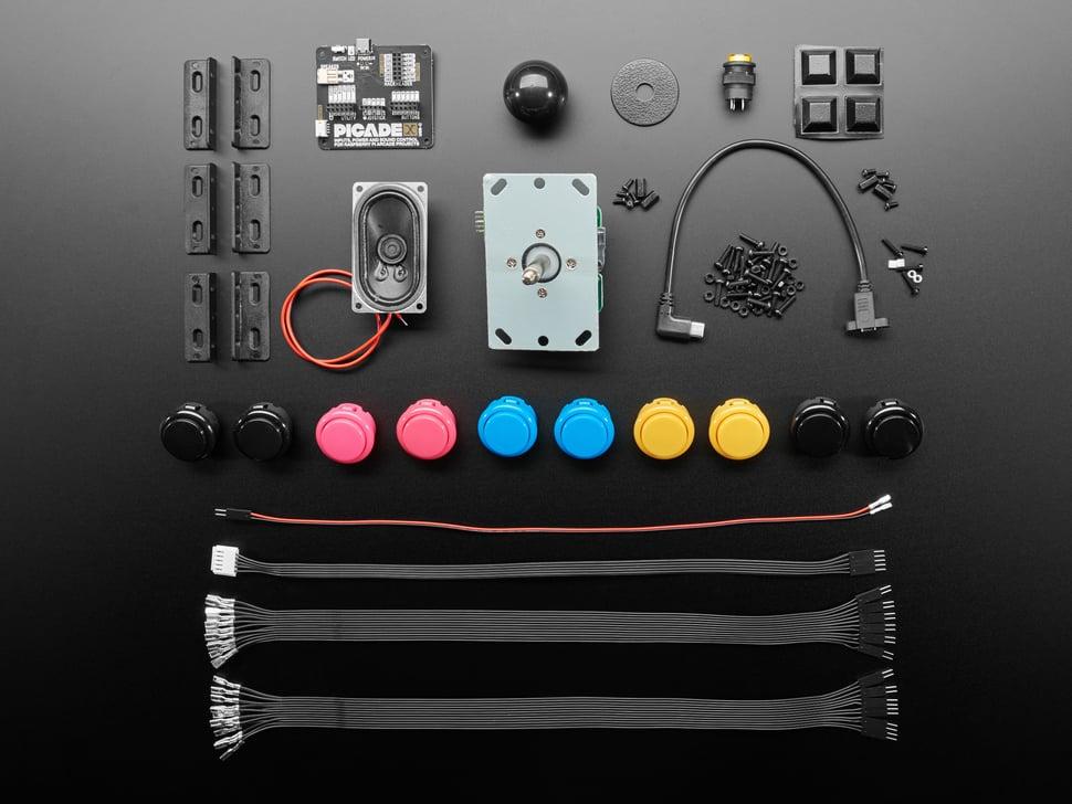 De kit wordt geleverd met zwarte, gepoedercoate panelen, arcadeknoppen met drukknopbevestiging, een joystick met een zwarte bolvormige bovenkant en een luidspreker. Hij is eenvoudig aan te sluiten met de Easy DuPont-connectoren en biedt mono-audio via de I2S-audio-DAC met een 3W-versterker.