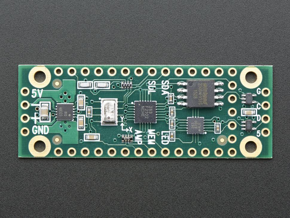 Dit compacte shield is voorzien van een bewegingssensor met 10 vrijheidsgraden, compleet met een drieassige accelerometer , magnetometer, gyroscoop en temperatuur- en barometrische druk-/hoogtesensor. De 2 Watt audioversterker en twee snelle 5V-buffers voor de aansturing van DotStar-leds maken het een onmisbaar hulpmiddel voor robuuste interactieve ontwerpen.