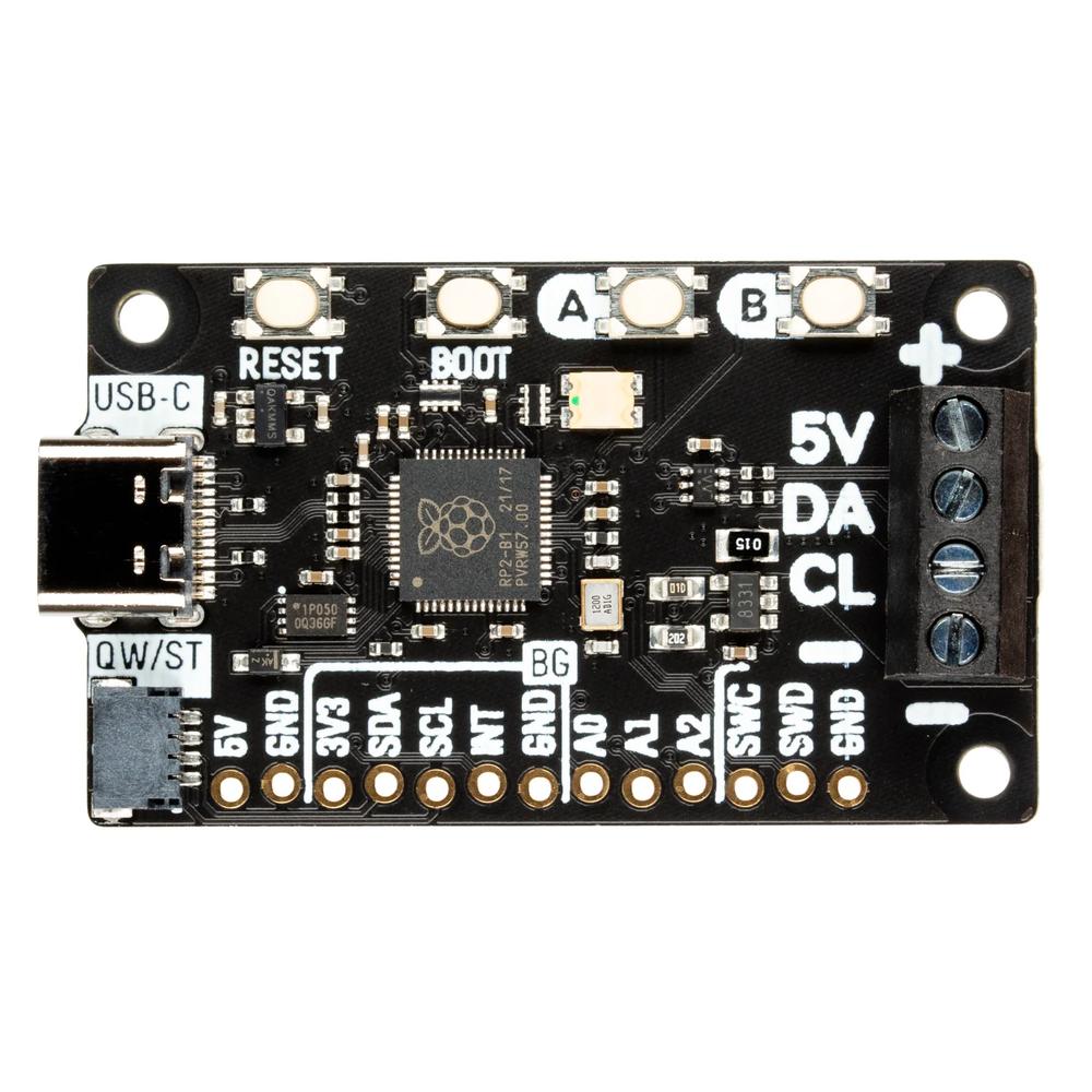 Plasma 2040 is een RP2040 LED-controller met USB C-voeding tot 3 A. Hij stuurt WS2812 en APA102 strips aan, en heeft schroefterminals, een Qw ST-connector, stroommeting op ADC3 en knoppen met RGB LED.