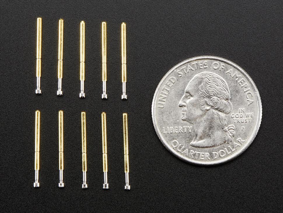 In ongecomprimeerde vorm is elke pin 16,5 mm (0,65 inch) lang, en in gecomprimeerde vorm is dit 14,2 mm (0,56 inch). Dit maakt ze ideaal voor toepassingen zoals JTAG-programmering, waar precisie en aanpasbaarheid cruciaal zijn.