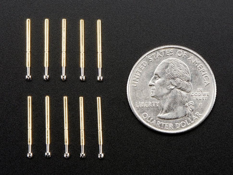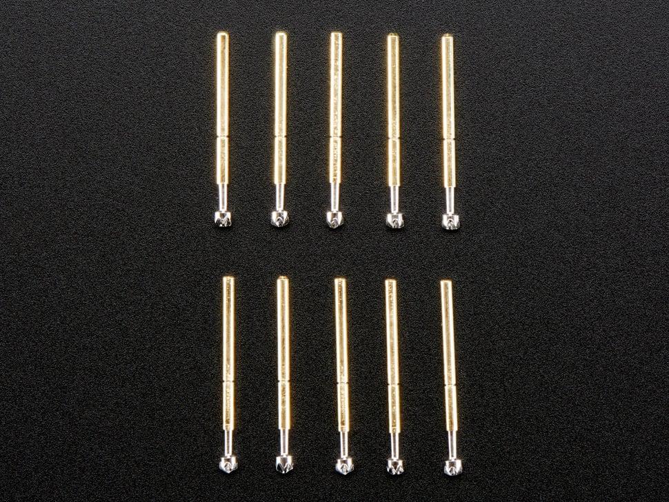 Pogo-pinnen zijn veercontacten, essentieel voor het maken van stabiele, tijdelijke verbindingen. Met een diameter van 1,0 mm passen deze slanke pinnen gemakkelijk op de meeste proto- of perf-boards. De veercontactkop measures 1,5 mm breed, wat zorgt voor een veilige verbinding.