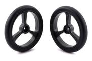 Deze zwarte kunststof wielen hebben siliconen banden en hebben een diameter van 40 mm (1,57″). Ze worden gemonteerd op microservo-splines met 20 tanden en een diameter van 4,8 mm, zoals de splines op FEETECH's FS90R micro-continue rotatieservo's en FT90R digitale micro-continue rotatieservo's. Dit product is een paar wielen.