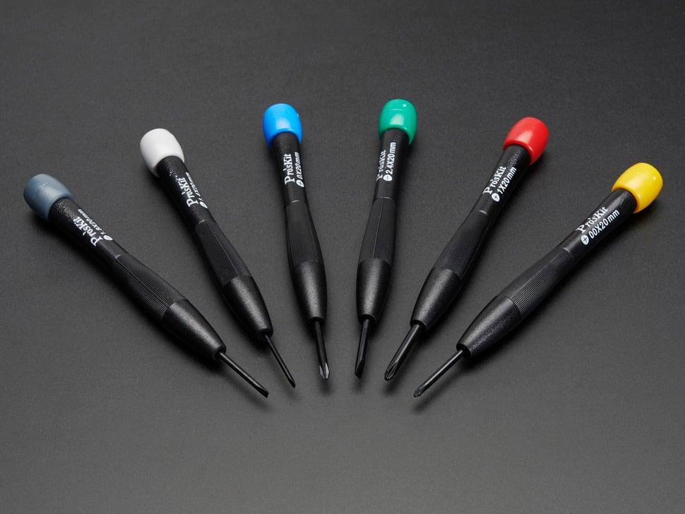 Verbreek zegels en maak garanties met een gerust hart ongeldig. Met deze schroevendraaierset in je gereedschapskist gaat gereedschap open en onthullen ze hun geheime binnenste. Deze set bevat 6 nauwkeurig ontworpen schroevendraaiers: 3 kruiskopschroevendraaiers (#1, #0, #00) en 3 platte schroevendraaiers (2,4 mm, 1,8 mm, 1,4 mm).