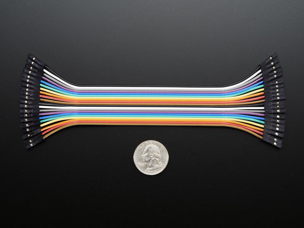 Deze female - female jumper wires zijn uitstekend geschikt voor het maken van kabelbomen en het verbinden van headers op printplaten. De draden zijn 150 mm lang en gebundeld in een strip van 20, met twee stuks in elk tien levendige regenboogkleuren.