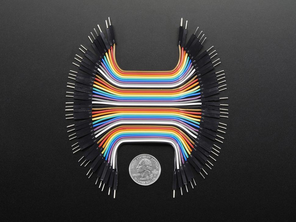 Deze hoogwaardige jumper wires zijn perfect ontworpen voor het maken van kabelbomen of het overbruggen van verbindingen op printplaten en bieden veelzijdigheid en precisie. Elke draad is 75 mm (3") lang en heeft male header die stevig passen op standaard headers van 2,54 mm (0,1"). Ze worden geleverd als 40-pins lintkabel en kunnen worden gesplitst in individuele jumpers of gezamenlijk worden gebruikt voor een nette bedrading.