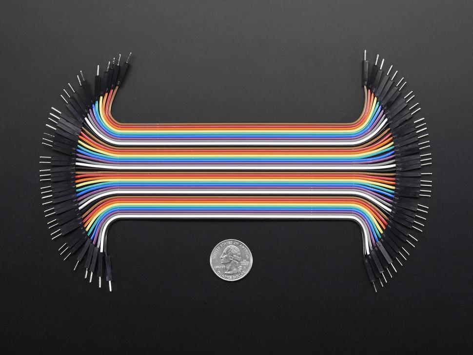 De draden worden geleverd als onderdeel van een 40-pins lintkabel. U kunt de draden afzonderlijk afscheuren voor aparte aansluitingen of ze intact laten voor een nette, georganiseerde installatie. Beschikbare lengtes zijn 75 mm (3 inch), 160 mm (6 inch) en 300 mm (12 inch).