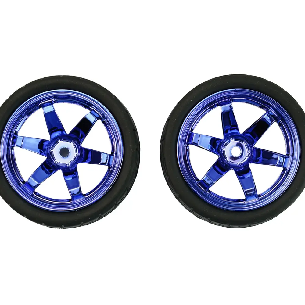 Om een vleugje personalisatie toe te voegen, bieden we deze wielen aan in drie aantrekkelijke kleuren: rood, blauw en zilver. Met deze variatie kunt u het uiterlijk van uw robot personaliseren en tegelijkertijd genieten van de superieure prestaties die deze wielen leveren. Houd er rekening mee dat het materiaal en het patroon van de band willekeurig worden verzonden, wat een verrassend element aan uw ervaring toevoegt.