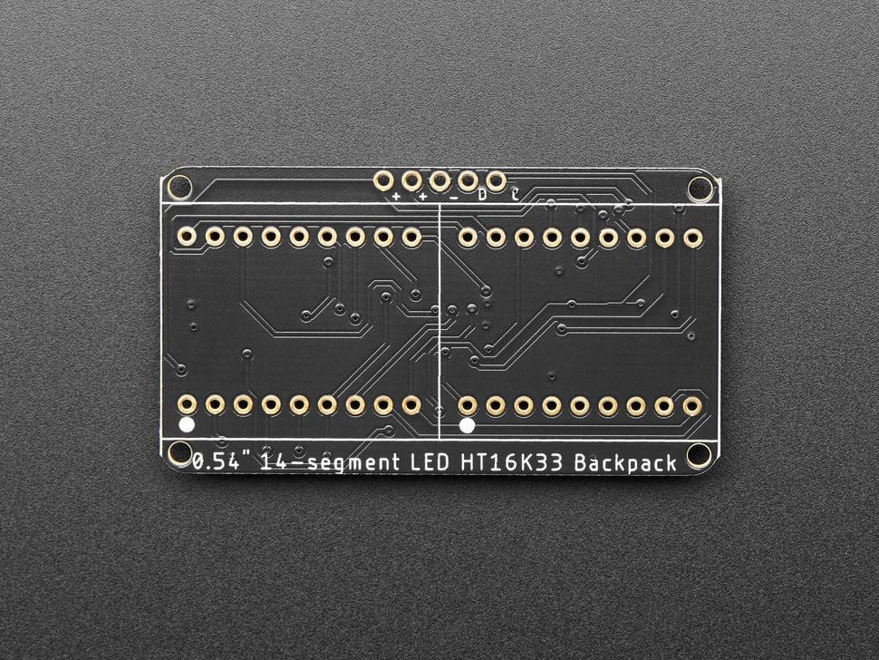 De inhoud van het pakket bestaat uit 2 ultraheldere rode alfanumerieke displays, een Adafruit 14-segment LED alfanumerieke rugzak en een 5-pins header . Met een eenvoudige soldeerklus van 5 minuten wordt de matrix aan de rugzak bevestigd. Een uitgebreide tutorial begeleidt gebruikers door het solderen, bedraden en bedienen.