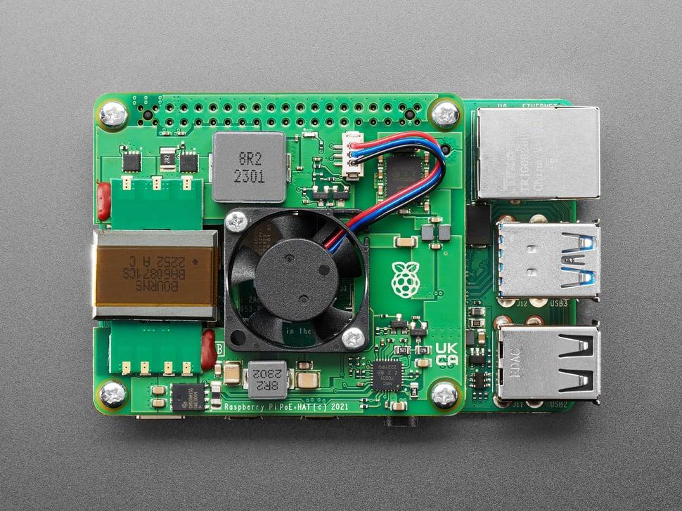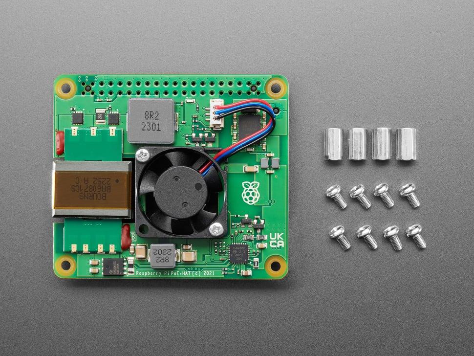 Power over Ethernet (PoE) kan uw projectopstelling revolutioneren door stroom en data te stroomlijnen via één Ethernet-kabel. Bevestig afstandhouders aan de hoeken van de hat en sluit deze vervolgens aan op de 40-pins header voor moeiteloze stroomtoevoer via de RJ-45-netwerkconnector.