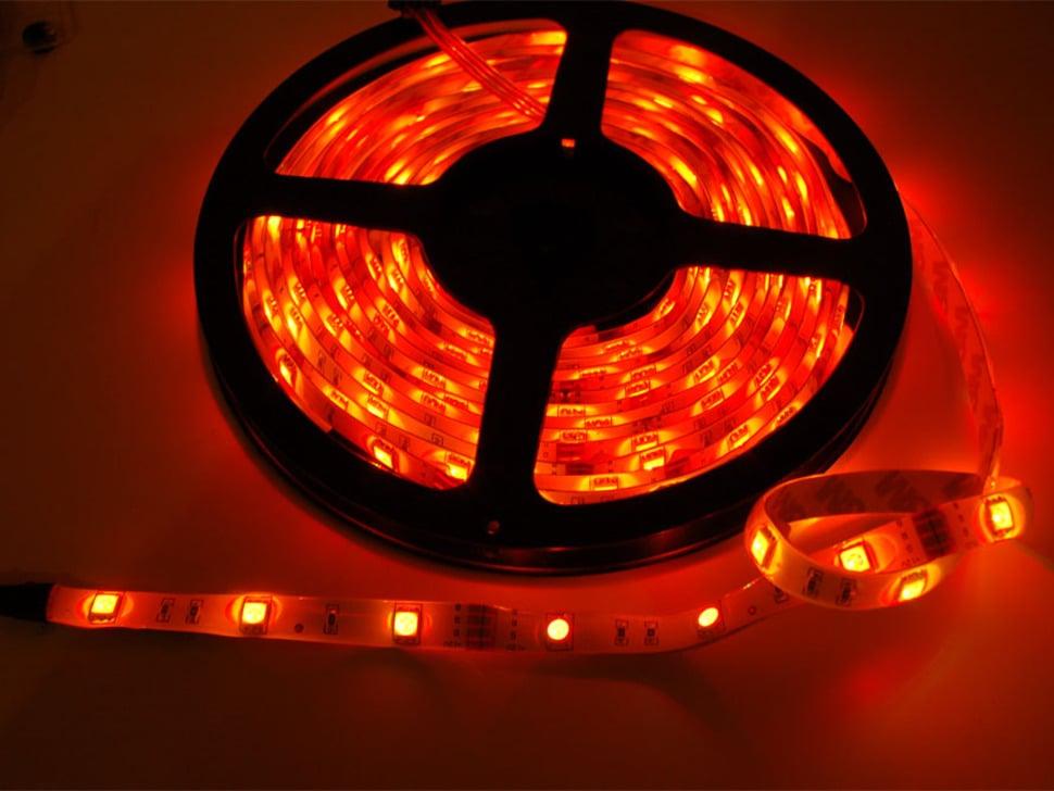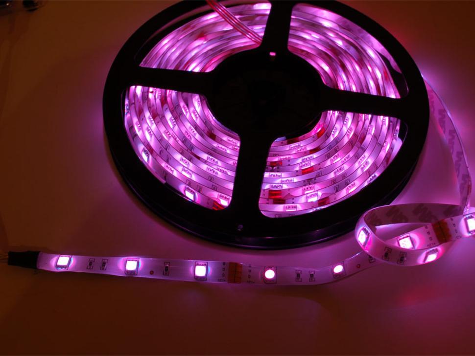 Deze ledstrips bieden levendige verlichting met 30 RGB-leds per meter. Ze zijn te bedienen met een microcontroller en drie transistors, met een vereiste 9-12VDC-voeding. ground de RGB-pinnen om de kleuren te activeren.