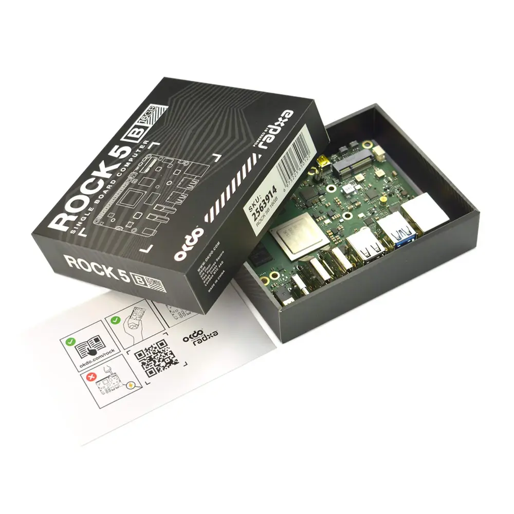 De ROCK 5B is een robuuste ARM board (SBC) met de Rockchip RK3588 SoC, die hoge prestaties en uitgebreide uitbreidingsmogelijkheden biedt. Hij beschikt over een Quad Arm Cortex A76 CPU en Quad Arm DynamIQ Cortex A55, met een krachtige Arm Mali G610MC4 GPU voor intensieve grafische bewerkingen. Twee HDMI-poorten maken aansluiting mogelijk op beeldschermen met een resolutie tot 8Kp60, terwijl een micro-HDMI-ingang tot 4Kp60 ondersteunt, wat zorgt voor een veelzijdige multimedia-ervaring.