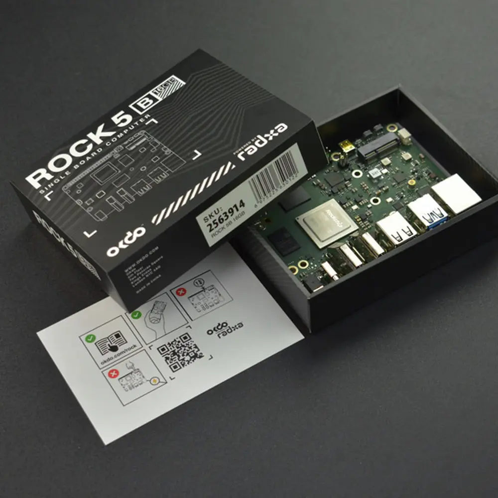 De ROCK 5B is uitgerust met een ingebouwde aan/uit-knop en garandeert gebruiksgemak en gegevensbescherming door veilige uitschakeling, waardoor beschadiging van de opslag wordt voorkomen. Hij beschikt over meerdere opslagopties met een eMMC socket voor flexibiliteit. De buitengewone functies en betrouwbaarheid maken hem de ultieme oplossing voor veeleisende multimedia- en industriële toepassingen, vergelijkbaar met hoe een Zwitsers zakmes onmisbaar wordt in een gereedschapskist.