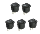 Een set van 5 rocker switches. Dit zijn aan-uit knoppen in ronde uitvoering. Deze schakelaars hebben een inbouw diameter van 14mm en een uiterste diameter van 16mm. Verder zijn deze schakelaars gemaakt voor een belasting tot 3A op 250V AC.