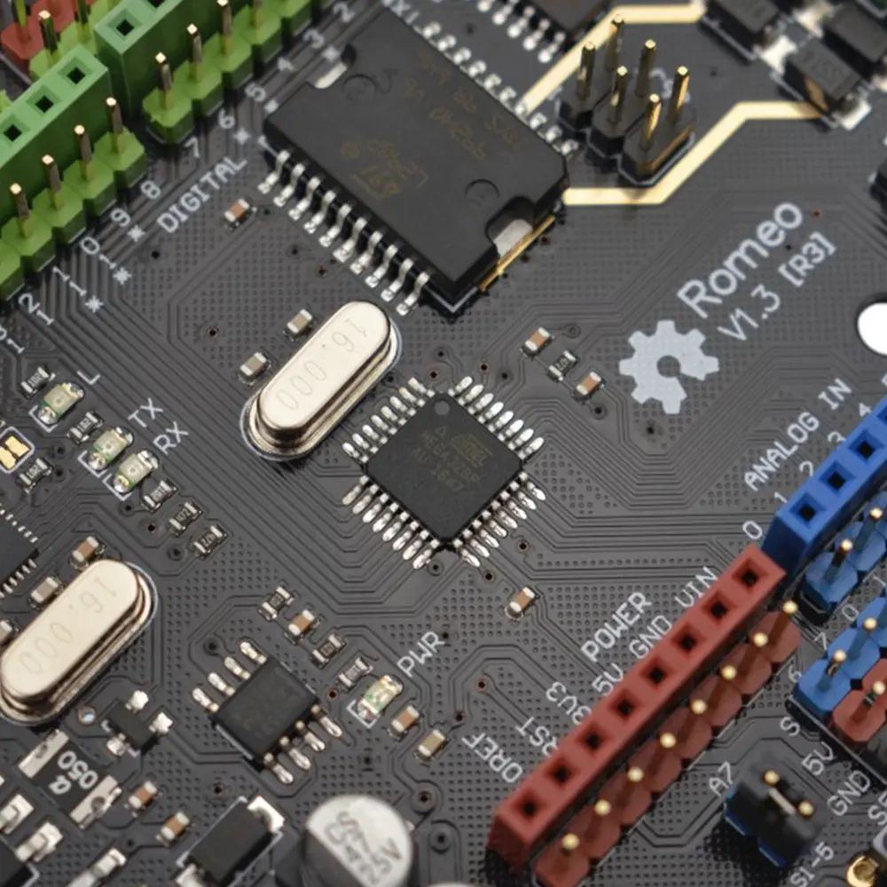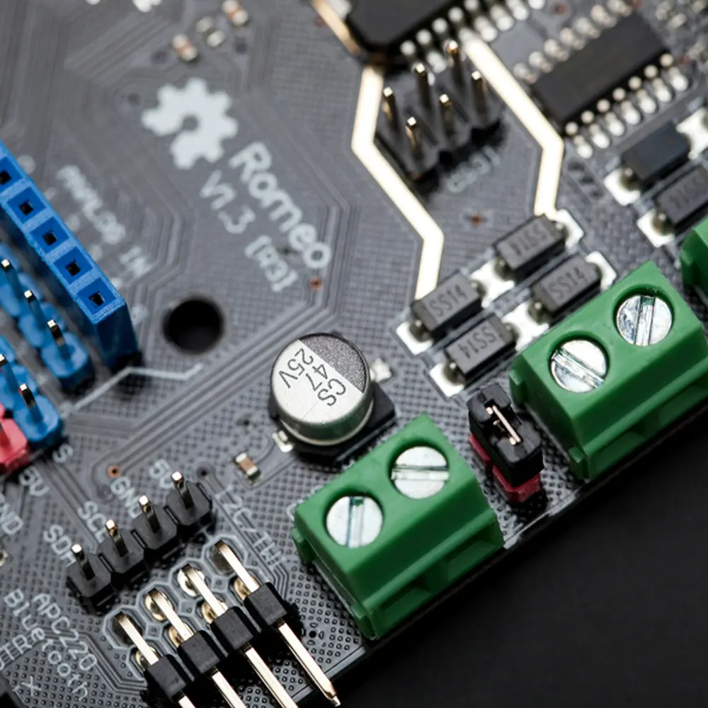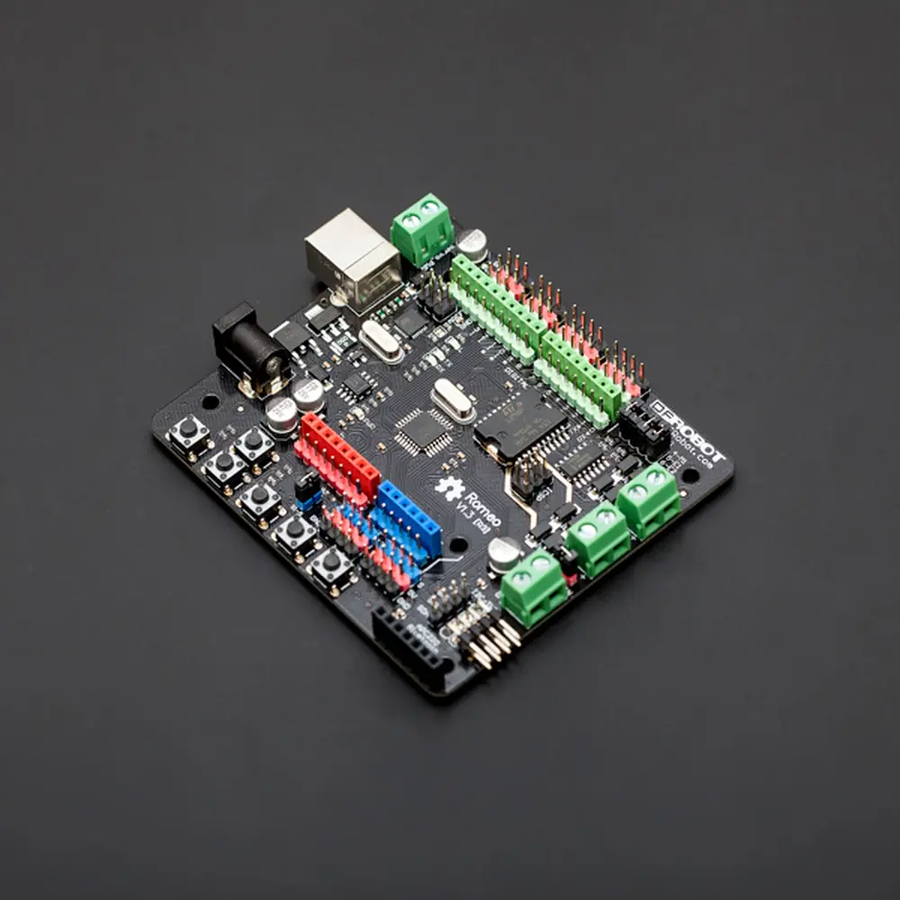 De Romeo-familie biedt een veelzijdige alles-in-één board van DFRobot , speciaal afgestemd op roboticatoepassingen. Gebouwd op het hoog aangeschreven open-sourceplatform Arduino , profiteert het van duizenden open-sourcecodes. Deze aanpasbaarheid maakt naadloze integratie met extra shields mogelijk, waardoor de functionaliteit wordt uitgebreid en geschikt is voor een breed scala aan projecten.