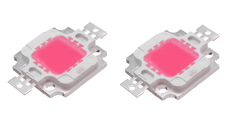 Een set van 2 led chips met een vermogen van 10W en een roze lichtkleur. Deze led chips bevatten 9 kleine 1W leds welke samen in 1 chip zijn geïntegreerd, waardoor deze leds een enorme hoeveelheid aan licht uitstralen (620 lumen). De led moet worden aangesloten op een 10W led driver welke 9V tot 12V kan leveren met een vermogen van 850mA. Ook is het noodzakelijk om deze led met koelpasta op een heatsink te plaatsen voor de warmte afvoer.