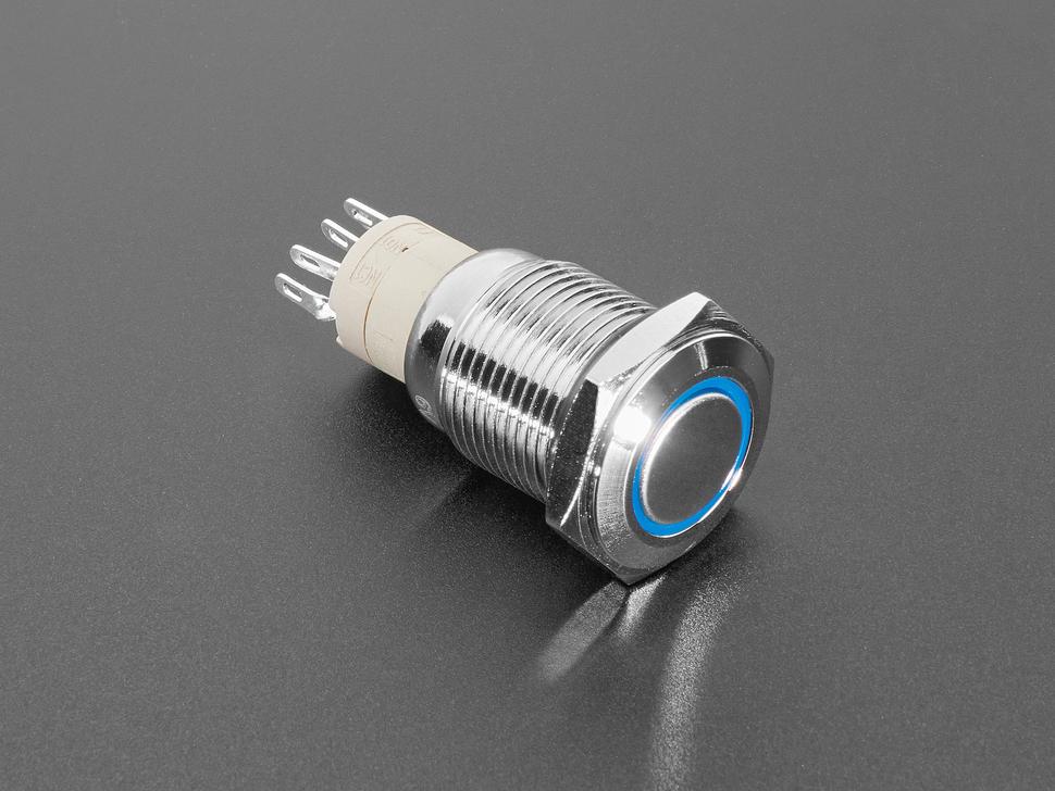 Adafruit Robuuste metalen aan/uit-schakelaar met blauwe LED-ring
