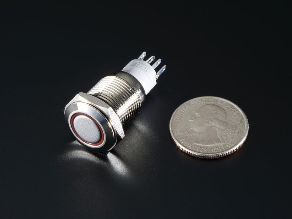 Adafruit Robuuste metalen drukknop met rode LED-ring
