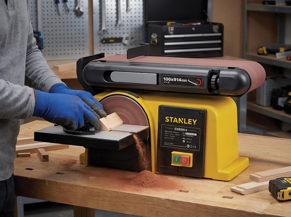 De Schuurbank heeft een flinke schuurband van 100 x 941 mm, aangevuld met een schijf van 150 mm, wat 'm perfect maakt voor allerlei toepassingen, van gedetailleerde projecten tot grotere oppervlakken. Met deze tool is het behalen van resultaten van professionele kwaliteit een fluitje van een cent.