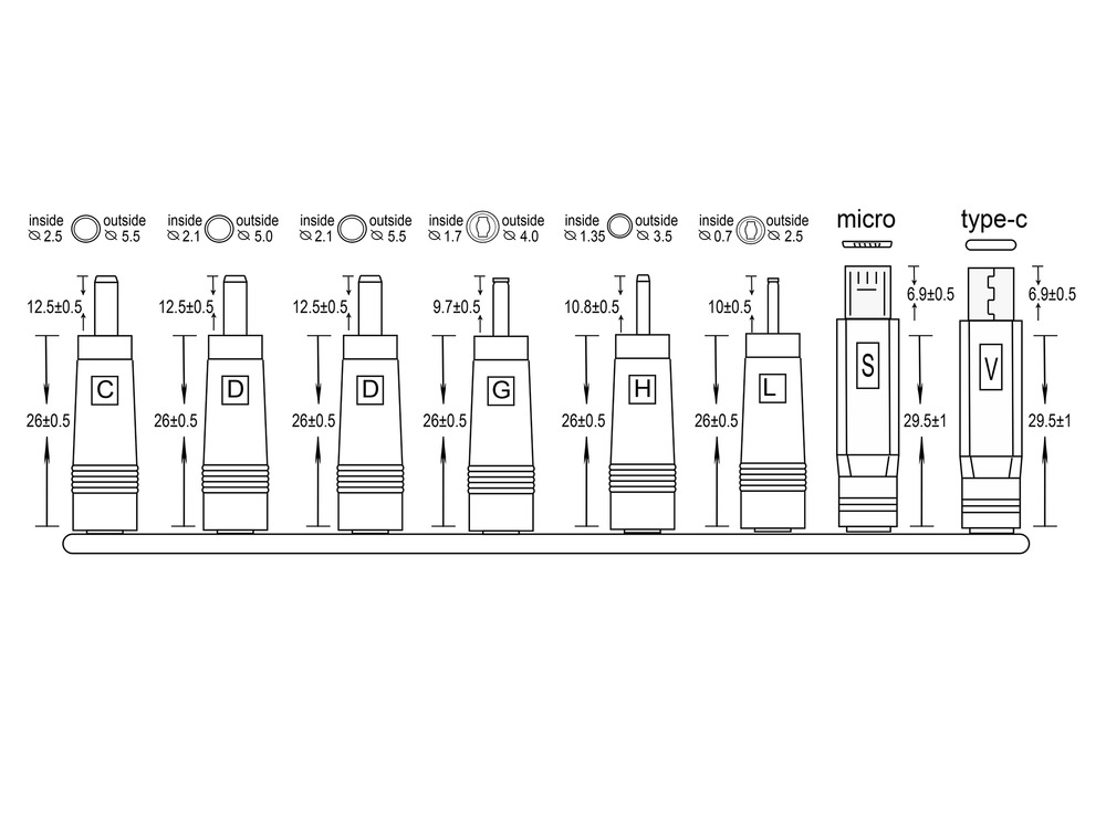 Voorzie je apparaten van precisie: de SET MET 8 UNIVERSELE DC PLUGGEN zorgt voor naadloze connectiviteit voor allerlei gadgets, met mannelijke pluggen van 2.1 x 5.5 mm.