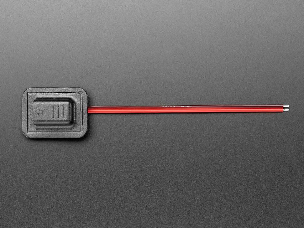 De jack is gegoten in rubber dat met de hand of machine genaaid kan worden, waardoor het naadloos geïntegreerd kan worden in textiel. Verbind gewoon de rode draad voor positieve stroom en de zwarte voor negatieve aarding. Voor extra flexibiliteit kan het ook gelijmd, geëpoxeerd of vastgeniet worden op een vlakke ondergrond.