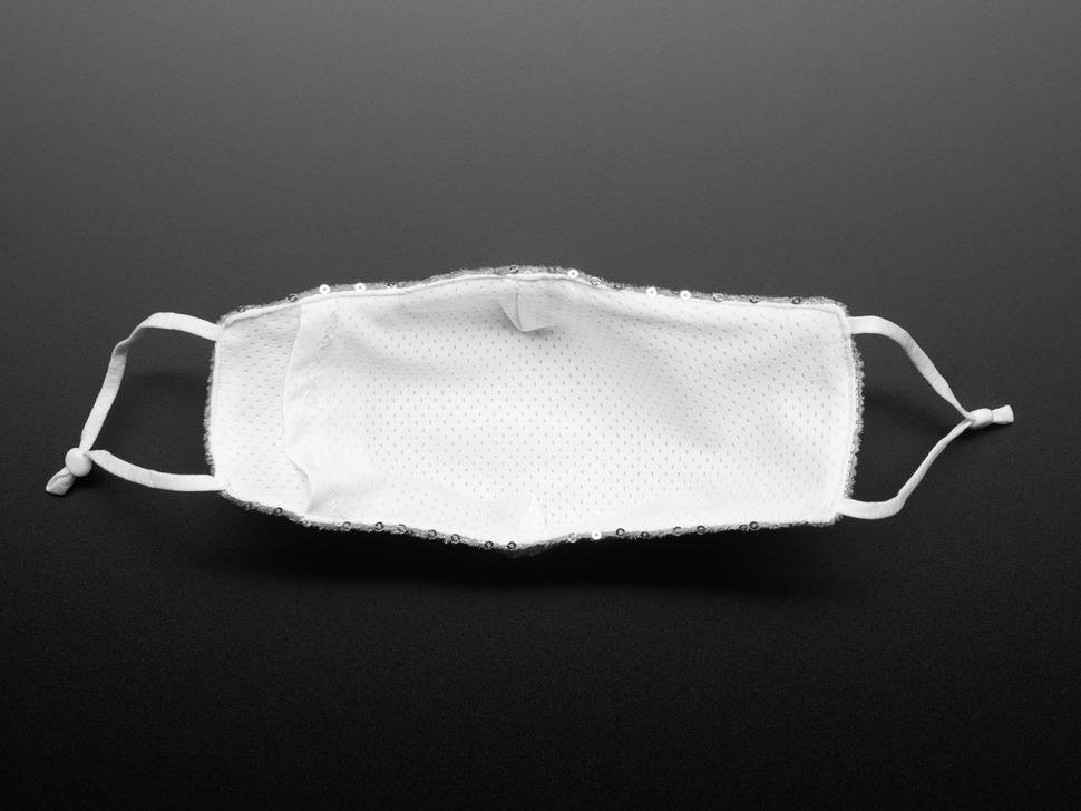 Dit stijlvolle en glamoureuze zilveren modemasker met pailletten houdt je stijlvol bedekt. De buitenste laag is gemaakt van strak geweven katoen, versierd met blingbling zilveren pailletten, voor een betoverende look en tegelijkertijd duurzaamheid.