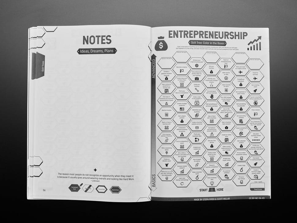 Skill Seeker Maker Edition van Steph Piper verandert vaardigheden opbouwen in een leuke, game-achtige ervaring. Volg je groei via een visueel verbluffende skill tree, waarbij elke gekleurde tegel je voortgang in 15 makersvaardigheidsgebieden markeert.