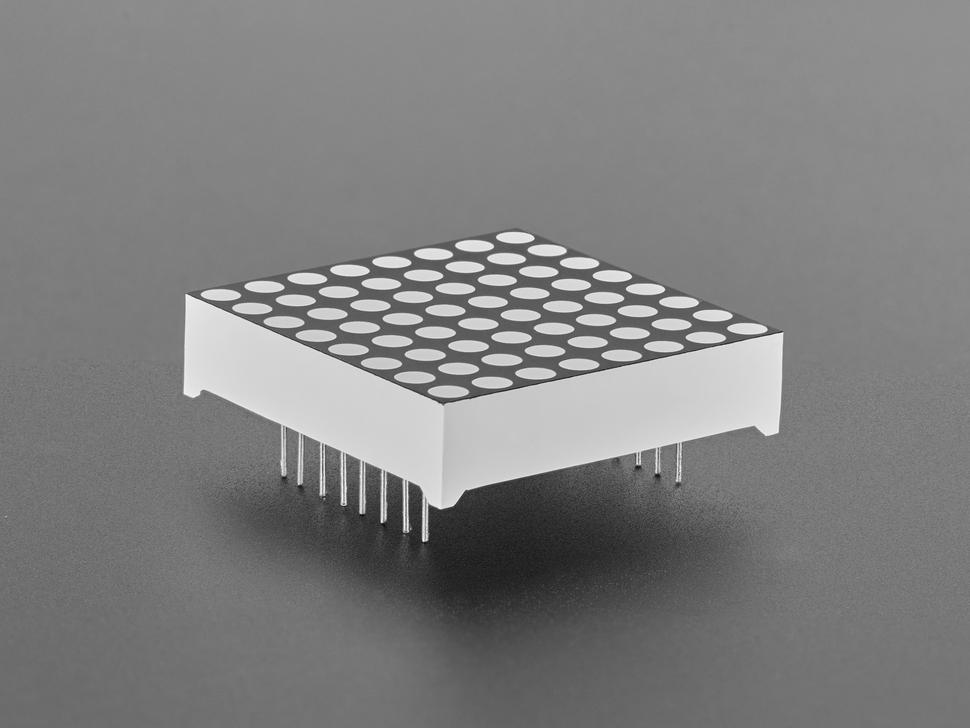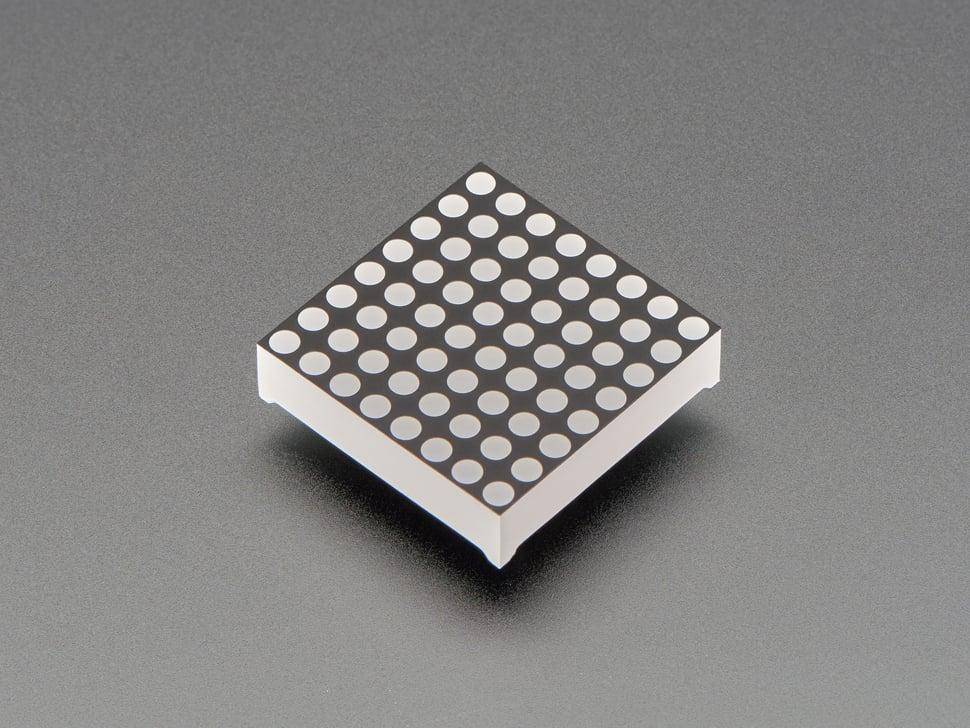 De matrix is uitgerust met 16 pinnen, gelijkmatig verdeeld over de zijkanten, wat zorgt voor moeiteloze integratie met standaard breadboards dankzij de 0,1 inch afstand tussen de pinnen. De rasterindeling vereist een 1:8 multiplexregeling, wat mogelijk is via een 74HC595- en TPIC6B595-configuratie of via een enkele MAX7219-chip, wat de multiplextaken vereenvoudigt.